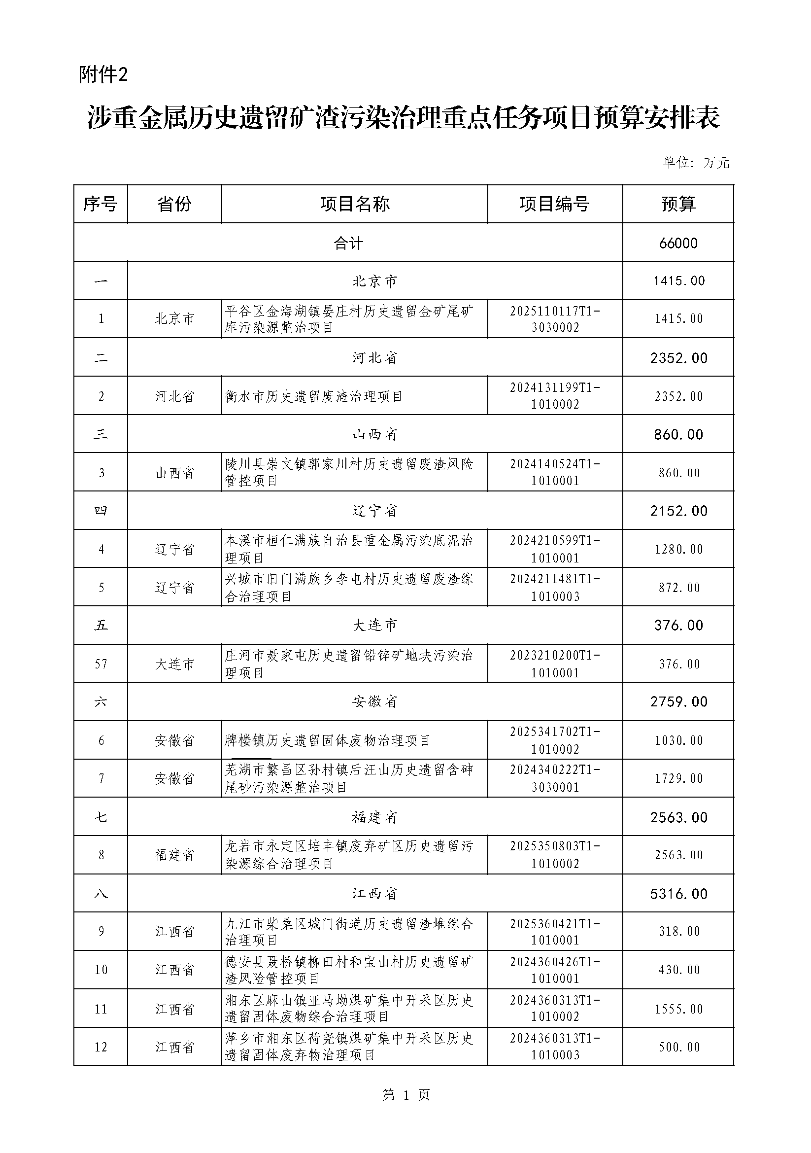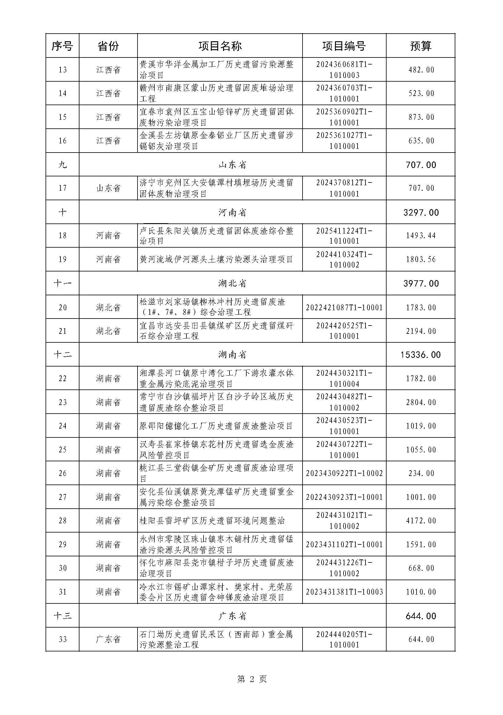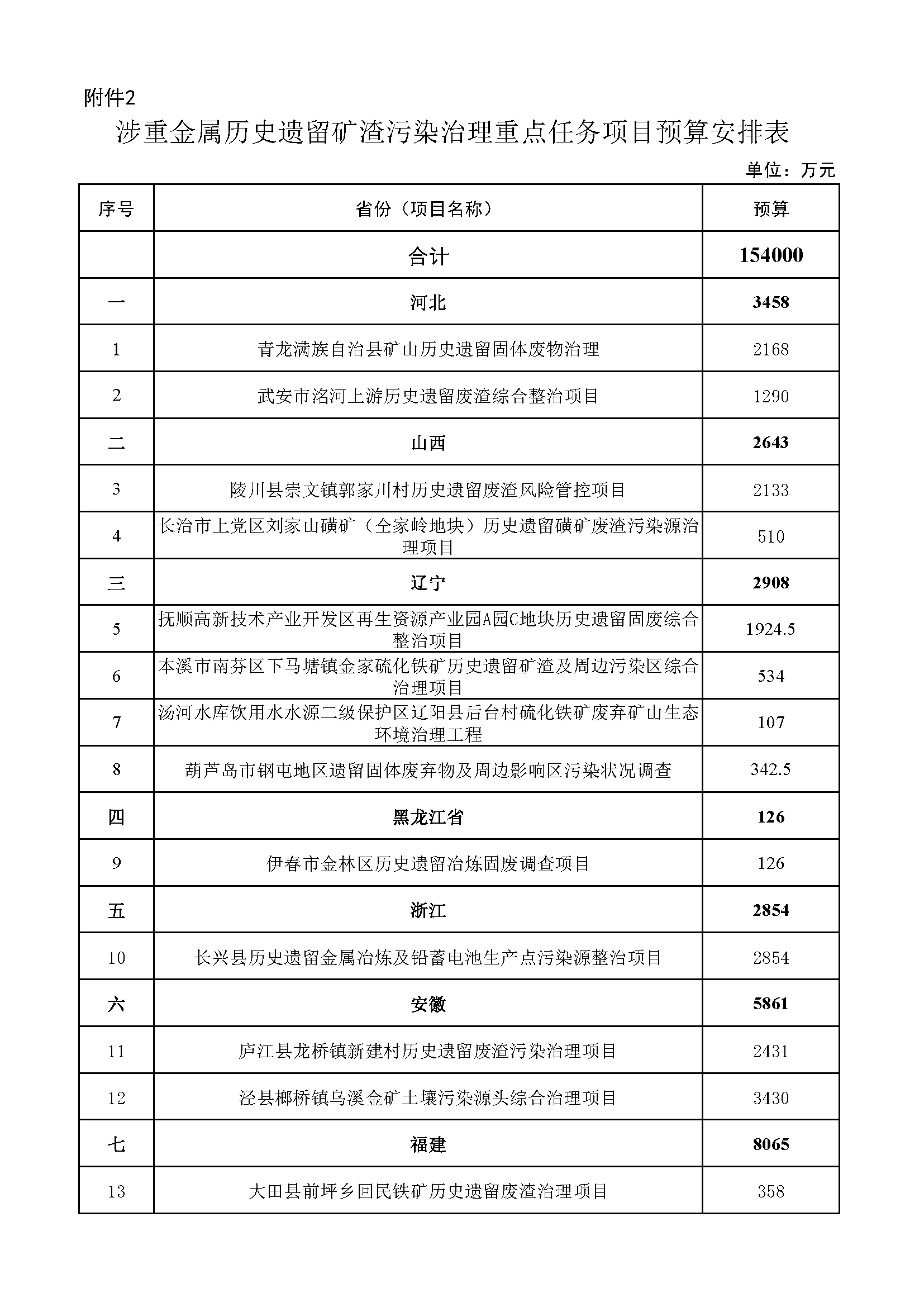 2.涉重金屬歷史遺留礦渣污染治理重點任務項目預算安排表