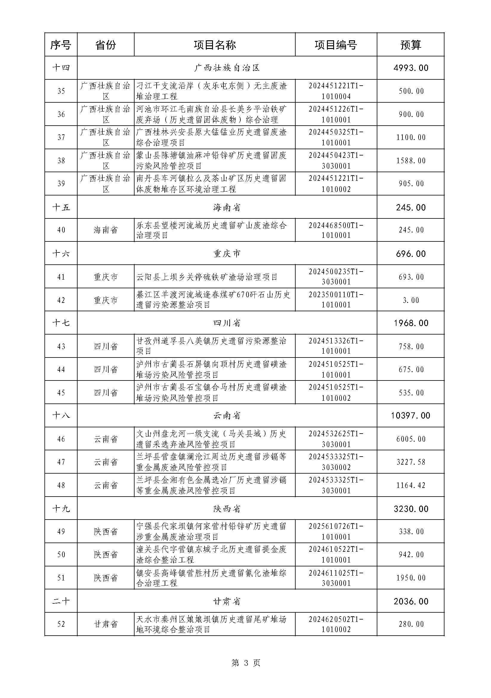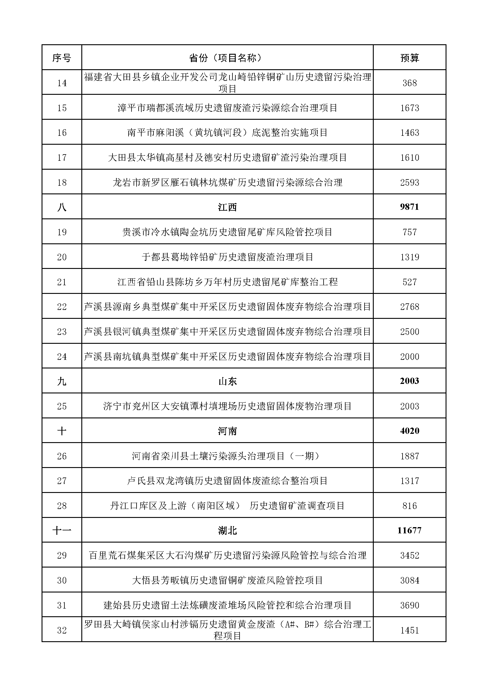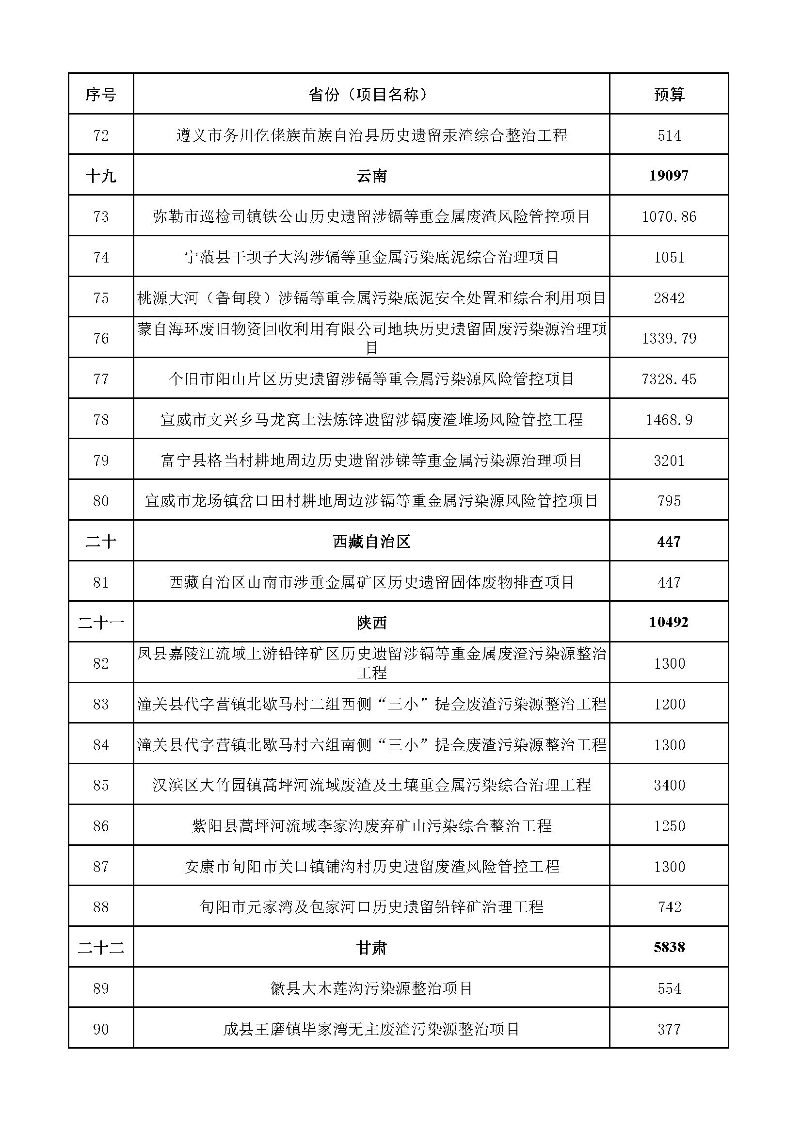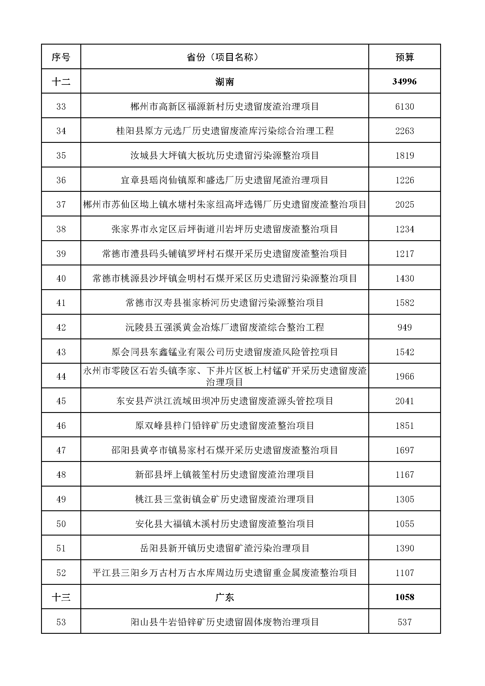 (提前批)涉重金屬歷史遺留礦渣污染治理重點任務項目預算安排表