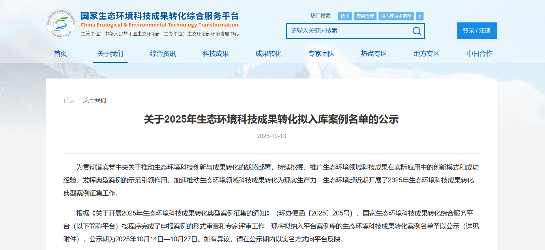 此次征集工作,由生態(tài)環(huán)境部發(fā)起,是為深入貫徹習近平生態(tài)文明思想,全面落實黨中央關于推動生態(tài)環(huán)境科技創(chuàng)新與成果轉化的戰(zhàn)略部署,持續(xù)挖掘、推廣生態(tài)環(huán)境領域科技成果在實際應用中的創(chuàng)新模式和成功經驗,發(fā)揮典型案例的示范引領作用,加速推動生態(tài)環(huán)境科技成果轉化為現(xiàn)實生產力,服務生態(tài)環(huán)境質量持續(xù)改善和經濟社會高質量發(fā)展。面向社會征集具有創(chuàng)新性、實效性、可復制的生態(tài)環(huán)境科技成果轉化典型案例。