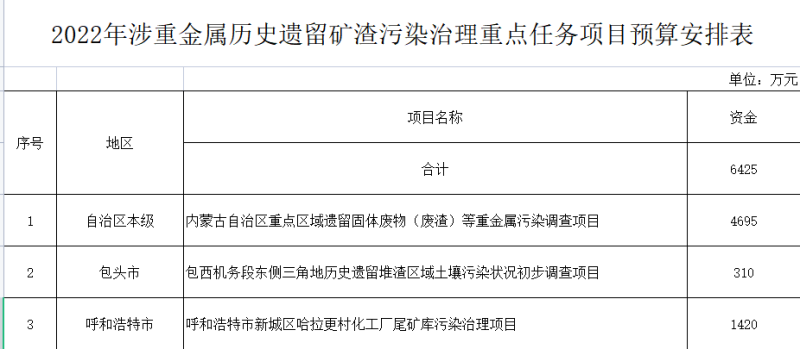 三、請各省進一步加強項目管理,強化項目全過程監(jiān)管和實施情況調(diào)度,切實提高項目進度和預(yù)算執(zhí)行率。同時,繼續(xù)做好涉重金屬歷史遺留礦渣治理等重點項目儲備工作,抓緊開展項目論證、立項等前期工作,夯實項目實施基礎(chǔ)。中央財政將在后續(xù)資金分配中,繼續(xù)將各地儲備項目數(shù)量和質(zhì)量作為資金分配的重要依據(jù),推動“資金跟著項目走”。