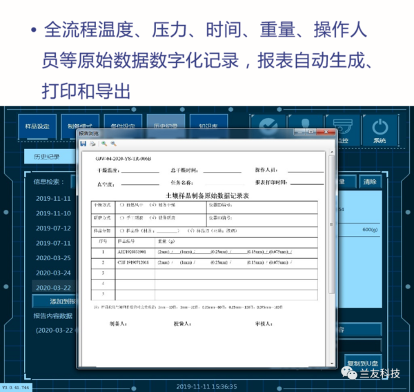 在土壤環(huán)境監(jiān)測(cè)全流程中,采樣、分析流程均有較成熟的質(zhì)控方法和體系,但是土壤樣品制備卻是質(zhì)量監(jiān)管薄弱環(huán)節(jié)。傳統(tǒng)手工方法制備過(guò)程中,所有原始數(shù)據(jù)均為手工記錄,并且常常出現(xiàn)數(shù)據(jù)記錄不完全,原始數(shù)據(jù)不可追溯等問(wèn)題。蘭友科技具有自主知識(shí)產(chǎn)權(quán)的FASP系列全自動(dòng)土壤樣品制備系統(tǒng),在掃碼、干燥、粗磨、精磨、混勻、篩分、稱(chēng)量、四分分樣、裝樣、清潔等10余個(gè)步驟實(shí)現(xiàn)自動(dòng)化操作的同時(shí),最重要的是可對(duì)全流程的溫度、濕度、壓力、重量、時(shí)間、操作人等實(shí)驗(yàn)條件進(jìn)行數(shù)字化記錄,結(jié)合視頻監(jiān)控,所有原始數(shù)據(jù)全流程可追溯,報(bào)表自動(dòng)生成,避免人工造假和篡改。系統(tǒng)集成的質(zhì)量控制模塊,可以為土壤樣品制備提供科學(xué)的質(zhì)量控制方法,幫助用戶(hù)達(dá)到標(biāo)準(zhǔn)和規(guī)范的要求。